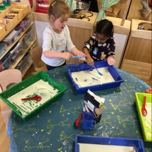 As it's the last week before our break, the children have been leading the activities and focus... The Bumble’s class have enjoyed sensory play with gloop and foam sand painting. We've been taste testing different foods which has been lots of fun and we've also started talking about going to school with the children enjoying trying on school uniform and role playing 'Teachers'. Large construction has also been a popular choice this week, with the children working together to make a boat and a bird watching house!